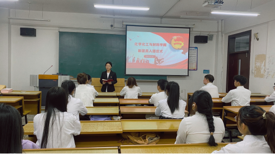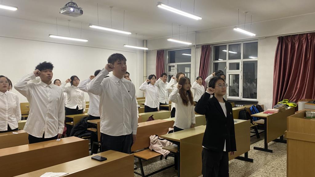 首先宋佳潼宣读了新团员名单,并对新团员表达了诚挚的祝贺和美好的祝愿。随后,她宣读了《中国共产主义青年团章程》中有关团员义务和权利的规定,强调各位新团员要树立崇高的理想信念,努力成为一名合格的团员,并为团员们发放了团员证、团徽及团章。紧接着,在她的带领下,新团员们面向团旗庄严宣誓。宣誓仪式庄重而神圣,新团员们不仅接受了精神的熏陶和洗礼,而且更加牢固地树立了听党话、跟党走的决心,彰显出新时代青年的使命与风采。
