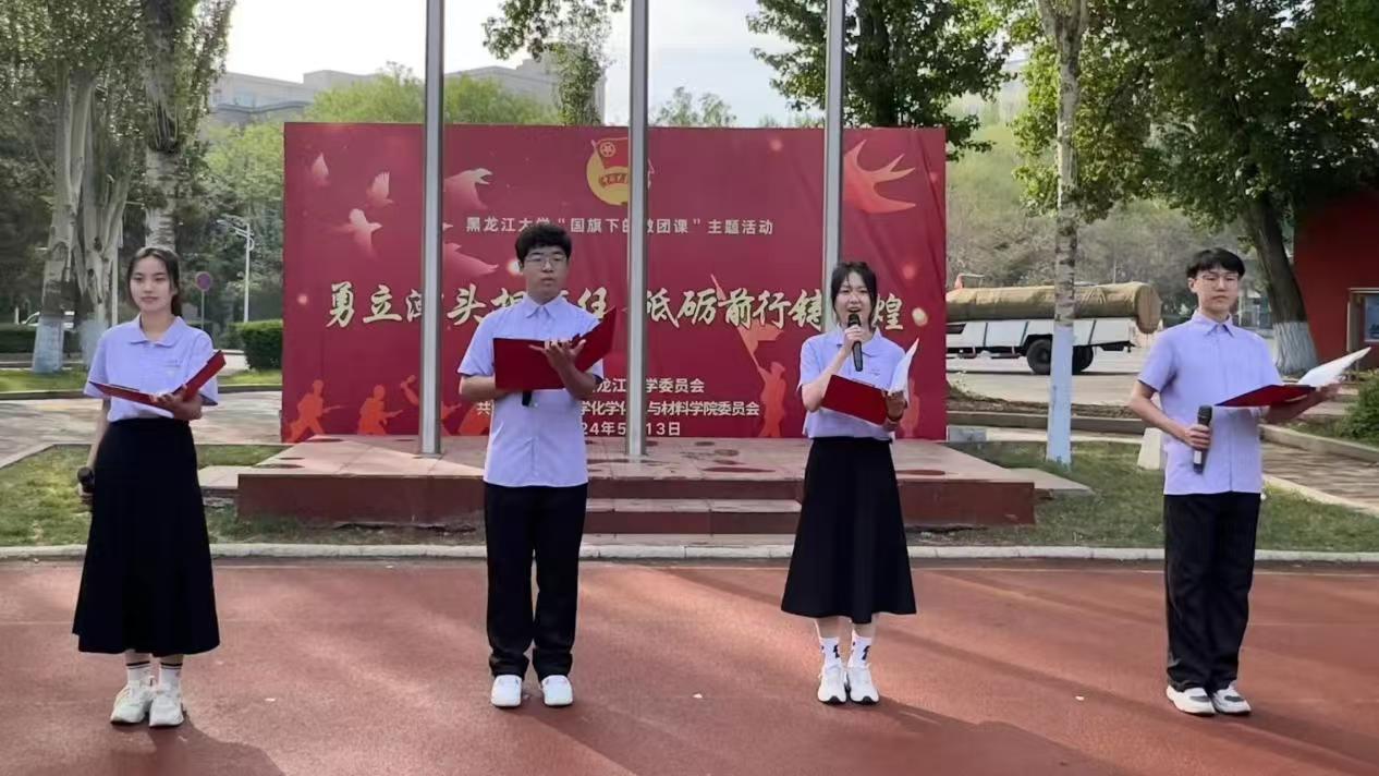 xc体育员工代表在国旗下进行《新时代,新青年,新作为》主题诗朗诵,用质朴的语言和真挚的情感表达了新时代的黑大化学人对祖国的热爱,他们将用自己的青春力量,跟随革命先辈的脚步,撑起“中国脊梁”,做一个眼中有光、脚下有路、肩上有责、心中有剑的新青年,奋力书写不负时代的青春华章。