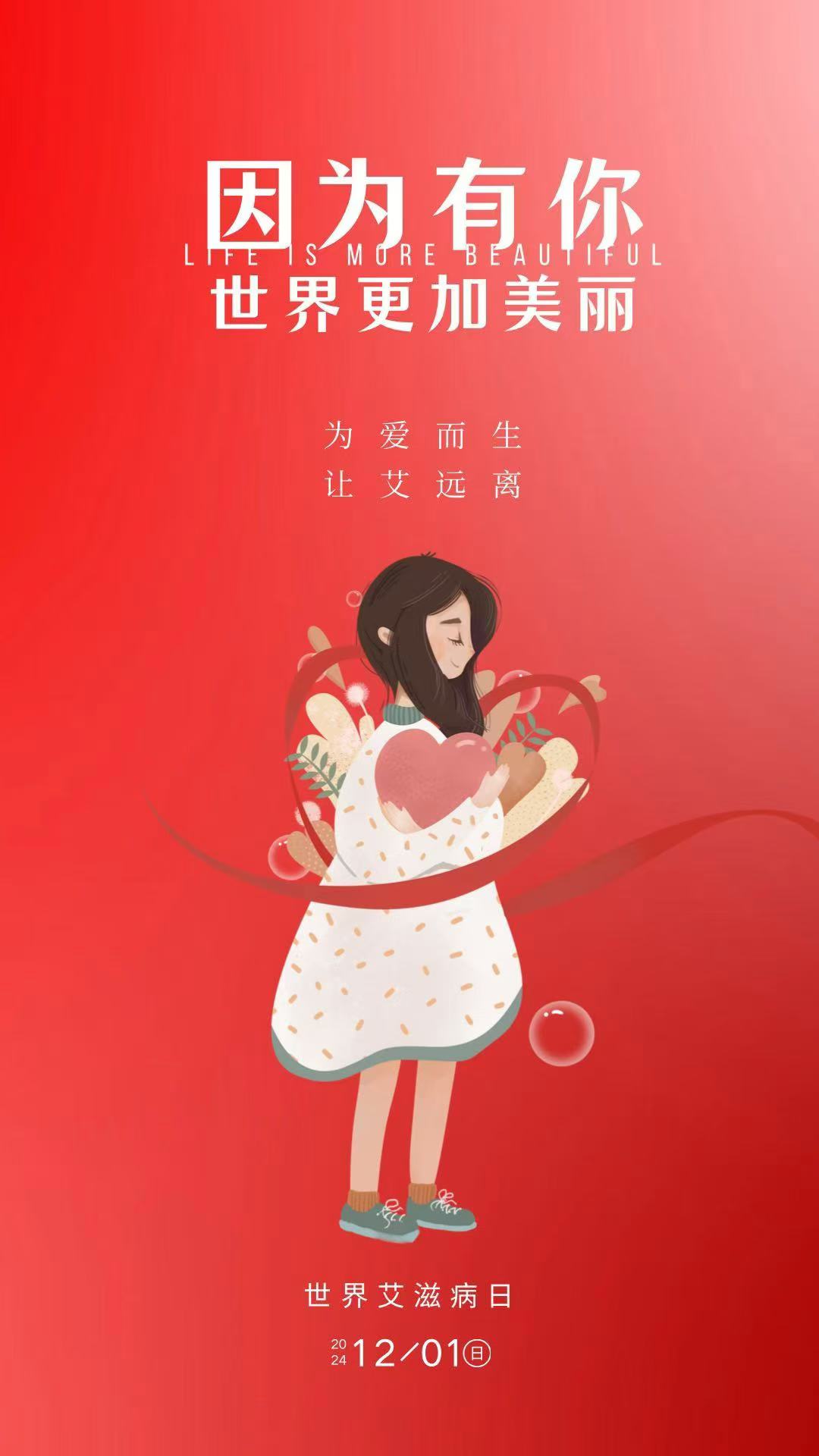 以一条醒目的红色丝带贯穿,象征着对全球艾滋病患者的关爱与支持。红丝带下方,无数只手交织在一起,代表着社会各界携手共进,共同抗击艾滋病的决心。希望我们共同努力,让红丝带成为希望的象征,让世界充满爱与关怀。
