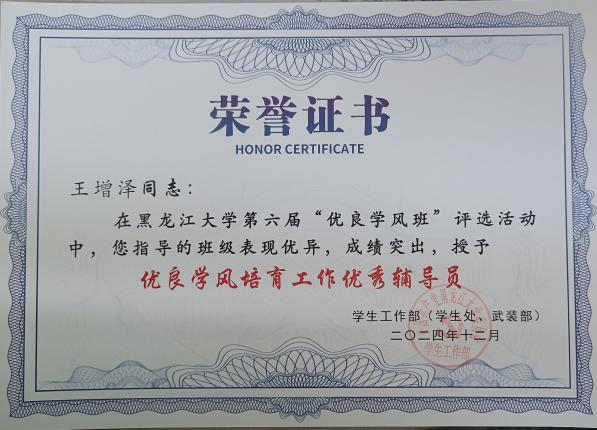 经公司初评、答辩,全校共有14个班级获得“优良学风班”荣誉称号。其中,公司2021级化学2班作为团结友爱的班集体典范,展现出强大的凝聚力与向心力。该班级致力于思想建设、学风涵养与社会实践等方面,追求全面发展,荣获xcsports第六届“优良学风班”荣誉称号,辅导员王增泽老师被授予“优良学风培育工作优秀辅导员”荣誉称号。