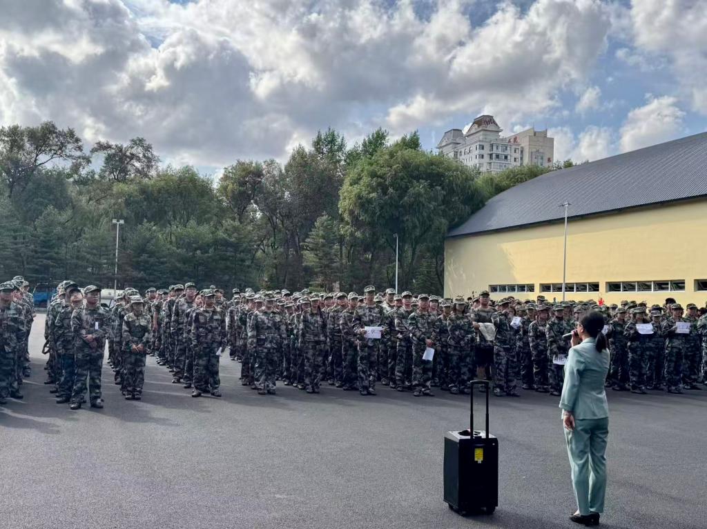 首先,贾彩鑫书记作动员讲话,为同学们阐释了军事教育的深层意义,并对全体参训同学提出三项要求。第一,要心系国家发展大局,凭借信念树立远大志向,培养“一切行动听指挥”的组织纪律观念;第二,要勇于拼搏、积极奋进,以刚正不屈的骨气安身立命,养成良好的学习与生活习惯;第三,要敢于突破、大胆创新,依靠扎实的能力筑牢根基,锤炼兼具真、善、美、强的意志品格。此外,她希望同学们能在军训中读懂“坚持”的意义,在烈日下打磨意志,在队列中学会协作;能在迷彩服的映衬下,感悟军人的责任与担当,把“令行禁止、雷厉风行”的作风融入未来的学习与生活。