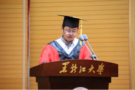 毕业生代表、2018级环境科学专业潘俊彦代表全体毕业生发言。她深切表达了对公司领导、老师的感激和对朋友、同学的不舍,并表示在黑大化公司学到了为人为学要横平竖直,坚定了真善美强的理想信念,将用一生去诠释“博学慎思、参天尽物”的真理。在校生代表、2020级化学专业姚琪代表全体在校生对学长学姐们顺利毕业表达了衷心的祝贺,并对他们耐心的帮助和指导表示感激。同时表示在校的化院学子一定不会辜负学长学姐们美好期望和春风般的关怀,继续传承“志远行实,学而不厌”的学风,刻苦专研,为公司发展添光添彩。