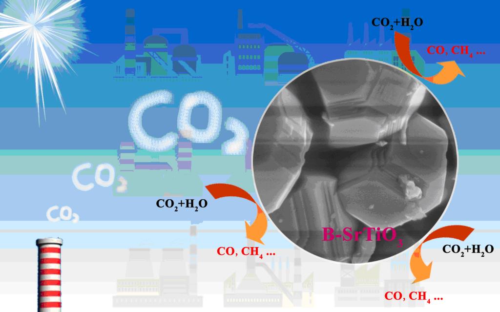 光催化二氧化碳还原转化为一氧化碳、甲烷等太阳能燃料是有望同时解决环境和能源问题的重要技术。但因缺少合适的光催化剂材料,因此性能较差,远未达到实用化要求。本研究针对目前光催化二氧化碳还原催化剂电荷分离效差、表面对二氧化碳吸附和活化能力差的关键科学问题,创新地采用了二硼化钛为钛源和硼源,采用高温固相法,成功制备了硼掺杂层状多面体钛酸锶催化剂,并将其应用于光催化二氧化碳还原反应。研究结果表明,制备的硼掺杂层状多面体钛酸锶催化剂,由于硼掺杂打破了钛酸锶的晶体对称性,产生了内建电场,促进了体相的电荷分离。同时,由于硼掺杂提高了钛酸锶的表面碱性,进而提高了二氧化碳分子的表面吸附和活化,从而有效提高了钛酸锶材料的光催化还原二氧化碳活性。在氙灯光源照射下,未负载任何贵金属催化剂的硼掺杂层状多面体钛酸锶的光催化还原二氧化碳性能是普通钛酸锶的三倍。产物主要为一氧化碳和甲烷。该研究成果为制备新型掺杂半导体光催化剂提供了理论和实验依据。