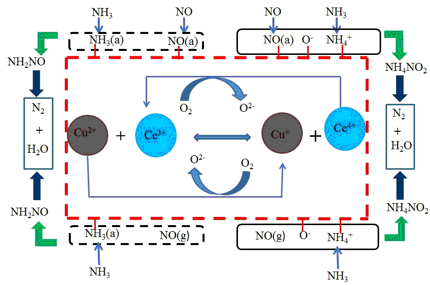 Scheme:reaction mechanism of NH3-SCR over Cu0.2Ce0.3Zr0.5