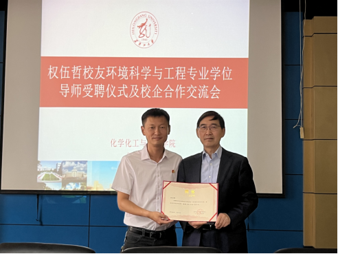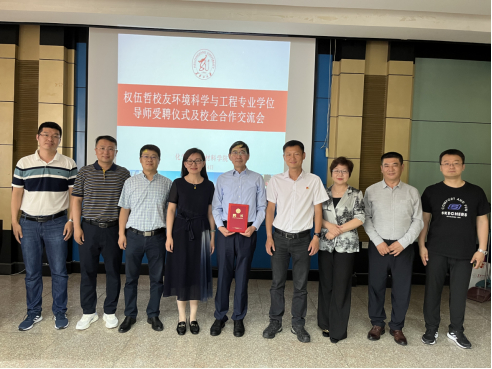 2022年7月4日14:00,xc体育在化学楼238会议室举行聘任权伍哲员工硕士生导师仪式及校企合作交流会。公司党委书记秦川丽、经理许辉、副经理徐英明接待了大连宇都环境技术材料有限公司董事长权伍哲、副总经理段连胜一行。公司办公室(员工办)副主任杨宇、环境科学系主任朱琦、环境科学与工程学科负责人邹金龙出席会议。