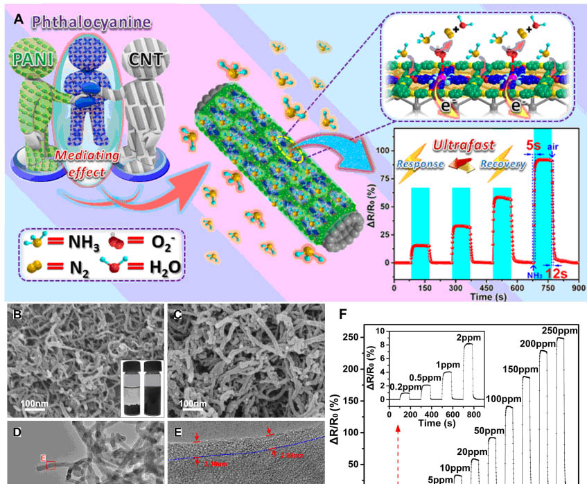 H. Wu, Z. M. Chen, J. L. Zhang, F. Wu, C. Y. He, Y. Q. Wu and Z. Y. Ren, Phthalocyanine-mediated non-covalent coupling of carbon nanotubes with polyaniline for ultrafast NH3 gas sensors. J. Mater. Chem. A, 2017, 5, 24493-24501, DOI: 10.1039/C7TA07443C. http://pubs.rsc.org/en/content/articlelanding/2017/ta/c7ta07443c#!divAbstract