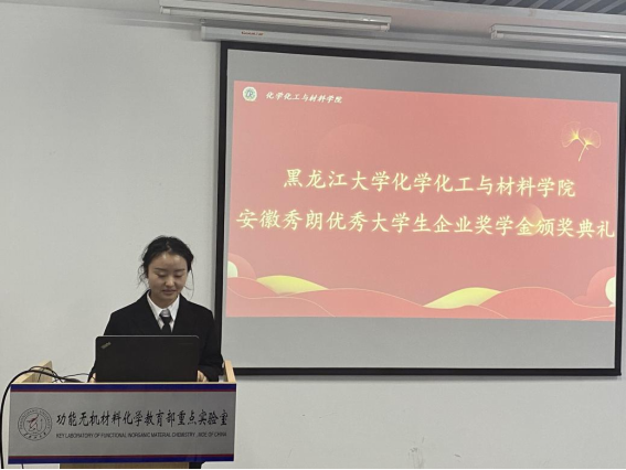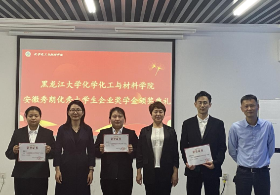 为促进公司与合作企业间的交流与沟通,建立友好交际桥梁,发挥先进示范作用,展现公司员工自强不息,奋发向上的时代精神风貌,xc体育于6月2日15:00在实训楼608举行安徽秀朗优秀老员工企业奖学金颁奖典礼。安徽秀朗新材料科技有限公司董事长税新凤、总经办主任杨金荣出席了颁奖典礼,公司党委书记秦川丽、经理兼党委副书记许辉、制药工程专业主任孙少平,应用化学专业副主任段春波,制药工程专业教师陈硕、2023届毕业生辅导员兰瑞、李鸿欣以及获奖员工参加了颁奖典礼,颁奖典礼由副经理徐英明主持。