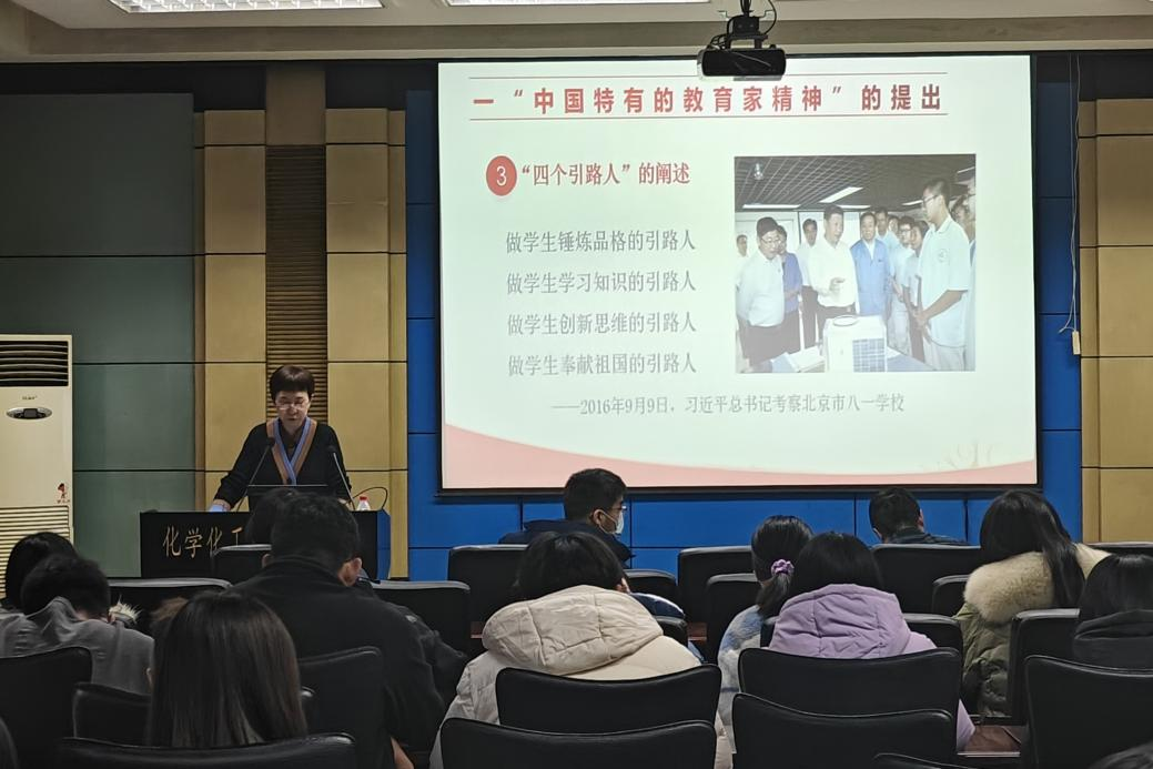随后,王世红经理细致的阐述了“教育家精神”的养成是教师专业成长的最高境界,她认为新时代的教师不再是传统意义上的“教书匠”,而是肩负着引领社会、创新文化、培养人才、奠基未来等重要使命的人类灵魂工程师。她用渊博的理论、生动的事例和大量的详实的资料为我们上了一堂生动的为党育人的思政教育课、爱国主义教育课、乐教爱生的师德教育课、践行社会主义核心价值观主题教育课,帮助参会教职工更好地理解“教育家精神”和“新时代好老师”的内涵。