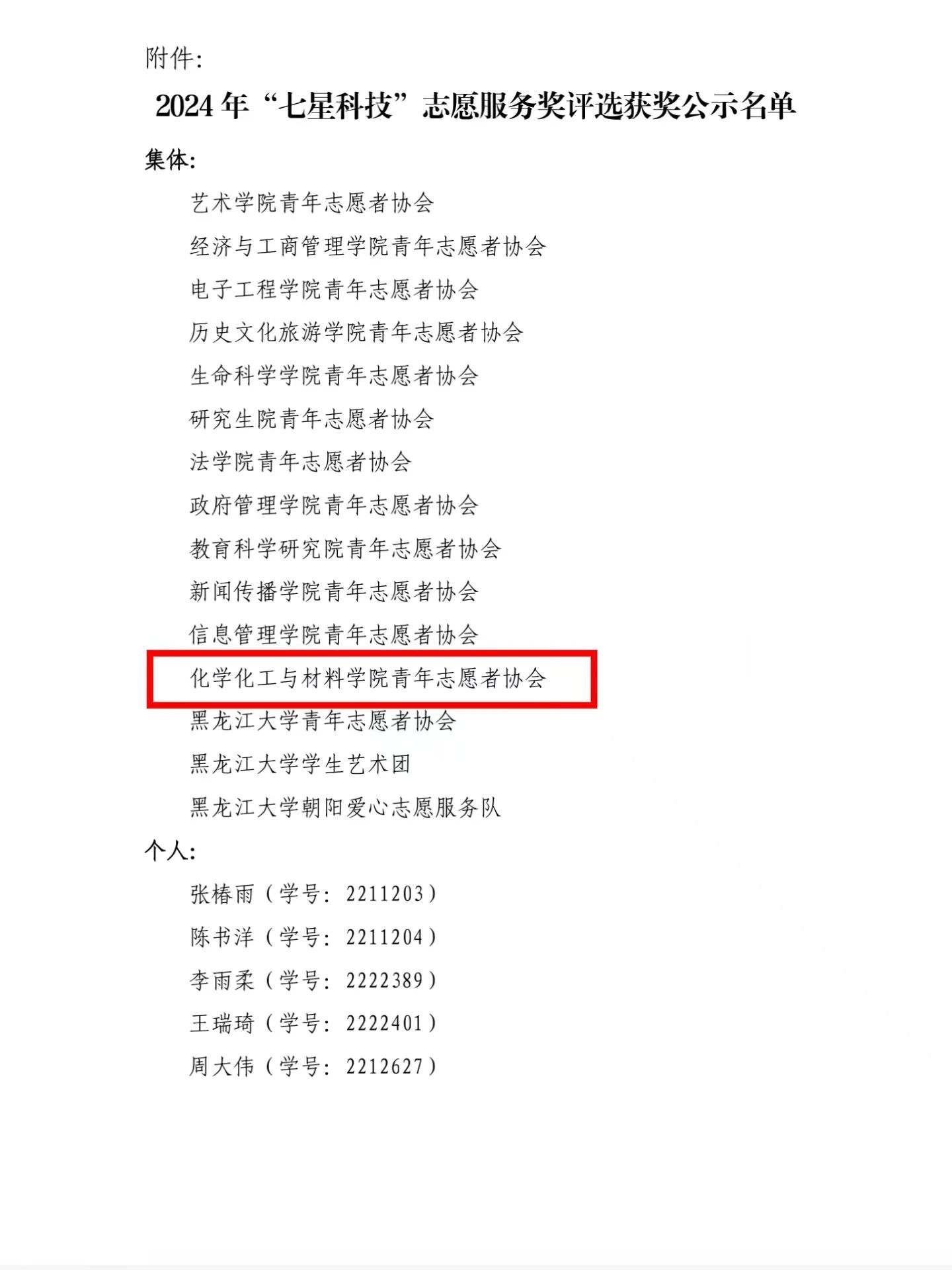 荣获2024年“七星科技”志愿服务奖为充分发挥公司先进典型示范引领作用,加强对广大青年的政治引领,激励和引导广大青年志愿者弘扬志愿精神,为助力中国式现代化龙江实践和公司有特色、高水平、现代化的地方综合性大学建设汇聚青春力量,公司开展了2024年“七星科技”志愿服务奖评选活动。经集体(个人)自愿申报,公司审核推荐,团市委、校团委联评等环节,公司青年志愿者协会荣获2024年“七星科技”志愿服务奖!