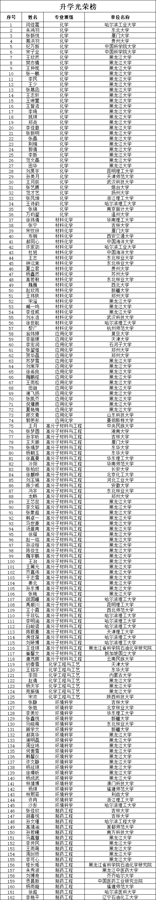 在2024年全国硕士研究生招生录取工作中,xc体育395名本科毕业生,共有162名员工录取为硕士研究生,升学率为41.01%,创公司历史新高!其中本校升学人数69人,占升学总人数的41.97%,外校升学人数93人,占升学总人数的58.03%,外校升学中录取至复旦大学、西安交通大学、哈尔滨工业大学、吉林大学、南方科技大学、华南理工大学、中国科公司大学化学研究所、中国科公司大学福建物质结构研究所等“985“、”211”、“双一流”高校及研究院所共55人,占升学总人数的34%,涌现出部分升学先进集体,全院14个毕业生班级,其中7个班级升学率超过40%,化学2班升学率达89.5%,毕业生所在员工党支部升学率为58.44%,格致园7栋417宿舍全员上岸。