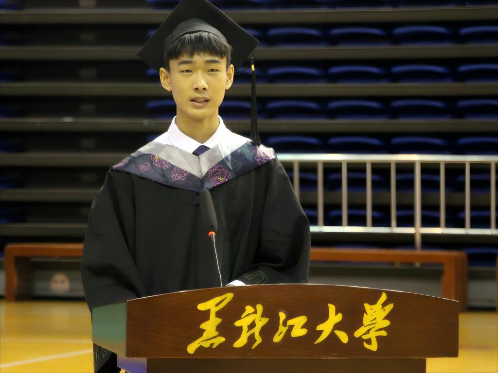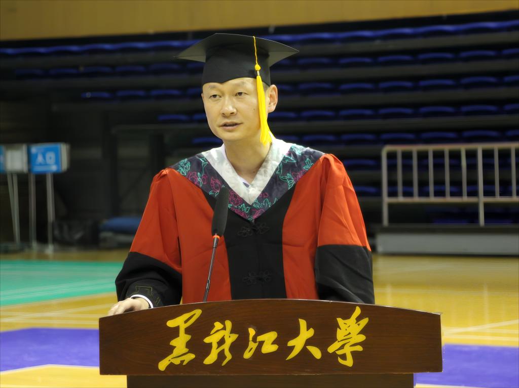 经理许辉教授在毕业典礼上致辞。他代表公司全体教师向毕业生致以最热烈的祝贺。他深情回望过去四年与毕业生们的点滴生活、共同成长的难忘瞬间,同时对毕业生们提出希冀,他希望全体毕业生把握机会,面对未知要敢于拼搏、迎势而上;要自信自强,将黑大化学作为坚强的后盾;要追求卓越,在未来的人生中谨记“志存高远、爱国奉献、艰苦奋斗、自强不息”的黑大精神,不忘嘱托,不负使命。他再次真诚地说道:“希望同学们鹏程万里、大展宏图,有空常回家看看,同学们毕业快乐!”