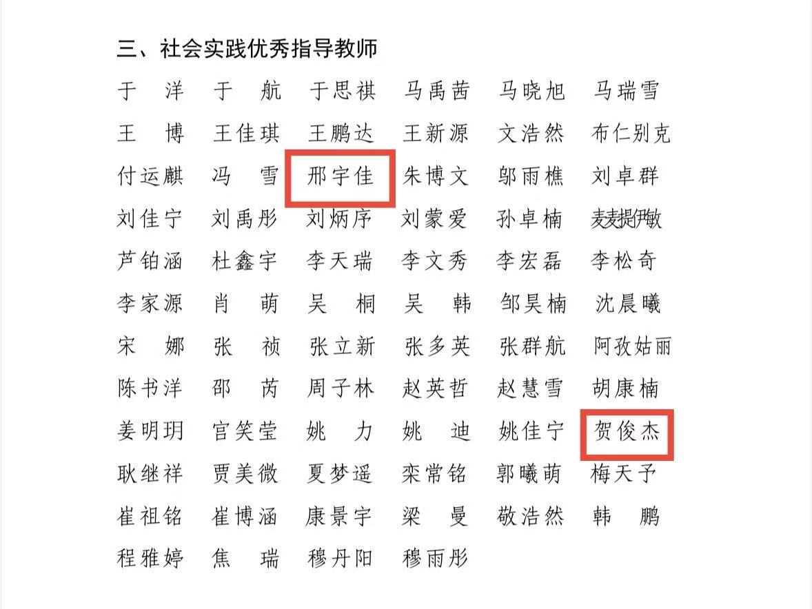 xc体育邢宇佳、贺俊杰两位老师荣获2025年xcsports暑期“三下乡”社会实践优秀指导教师荣誉称号。