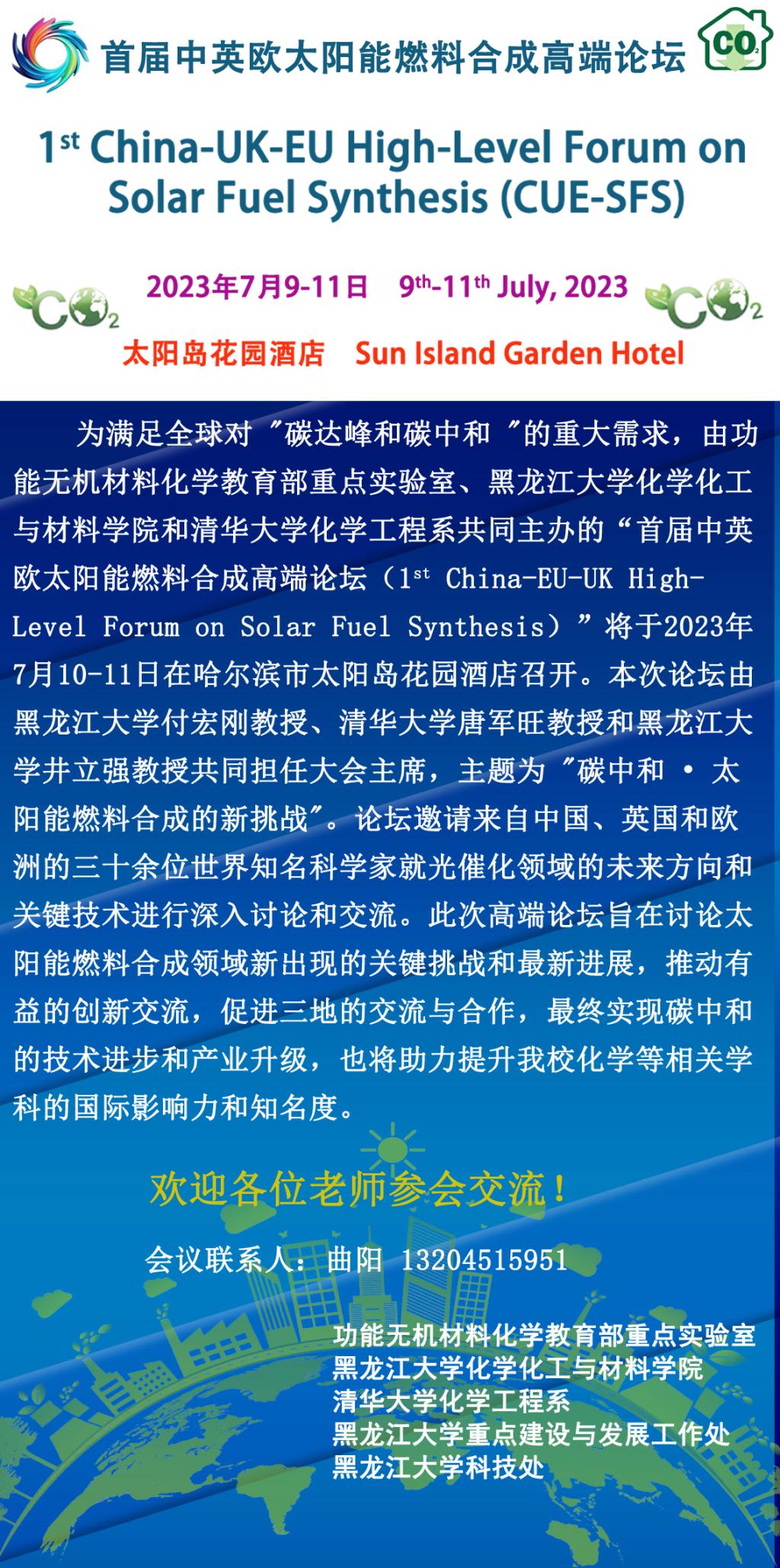 关于举办首届中英欧太阳能燃料合成高端论坛的通知