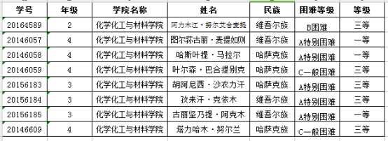 化学化工与材料公司2017-2018学年新疆籍少数民族家庭经济困难员工助学金评定结果公示