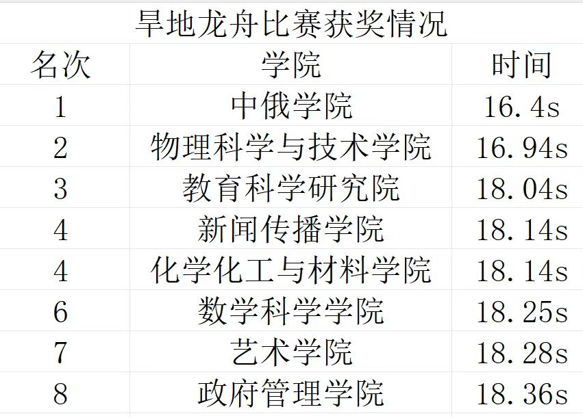 挥桨破浪赛龙舟,齐心协力夺头筹。旱地龙舟,比的不仅是速度,更是整齐和团结。在这场速度的较量中,大家收获的不仅仅是胜利的喜悦,更是珍贵的友谊和难忘的回忆。在本次旱地龙舟大赛中,化公司荣获第四名的好成绩,希望在下次比赛中,同学们能够再创佳绩。