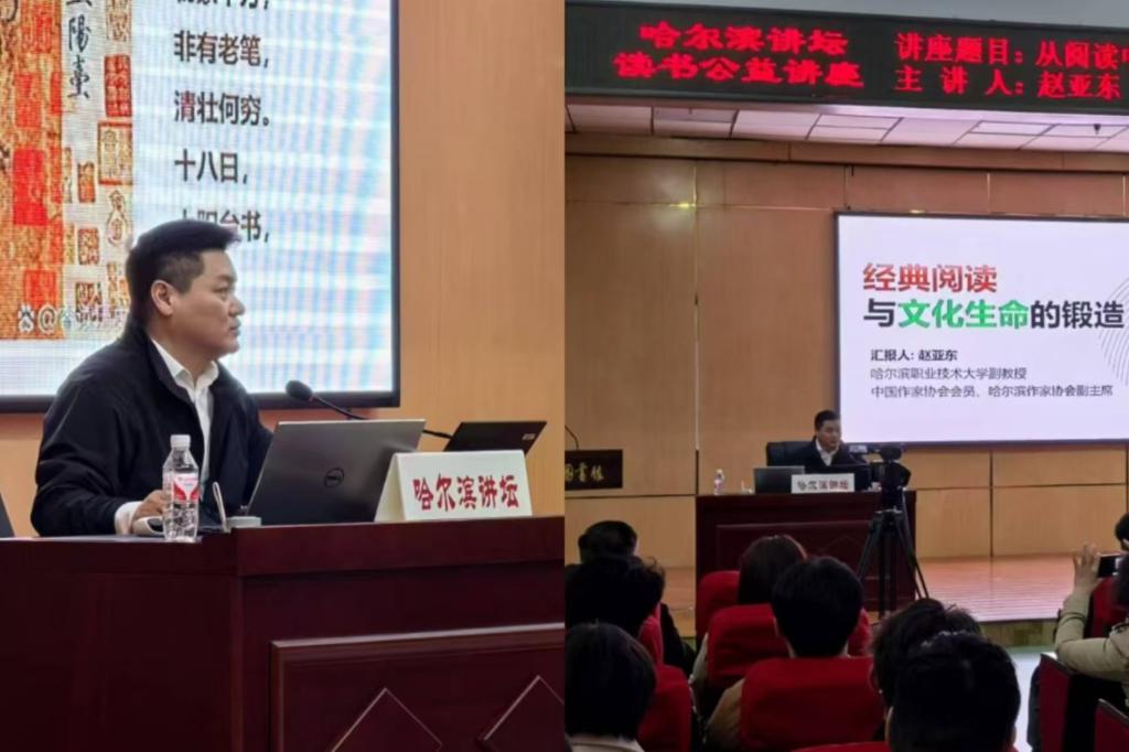 在引导工作结束后,志愿者们与读者一同参与了由赵亚东老师以“从阅读中汲取精神力量”为主题的精彩讲座。讲座中,赵亚东老师以朝代更迭为切入点,深度剖析各朝代政治、经济、文化因素的相互作用与演变。继而着眼近现代,生动再现列强入侵场景,深入解读洋务运动、戊戌变法等救亡图存运动的背景及意义。赵亚东老师凭借生动的讲述、详实的史料,带领大家仿若穿越时空,亲身感受历史的波澜壮阔。讲座期间,他还适时穿插诸多历史故事和趣闻,成功将原本枯燥的历史知识变得鲜活有趣。这般精彩的讲座,让在场的志愿者与读者皆收获满满,深刻领悟到过往历史是指引当下前行、照亮未来之路的明亮灯塔。