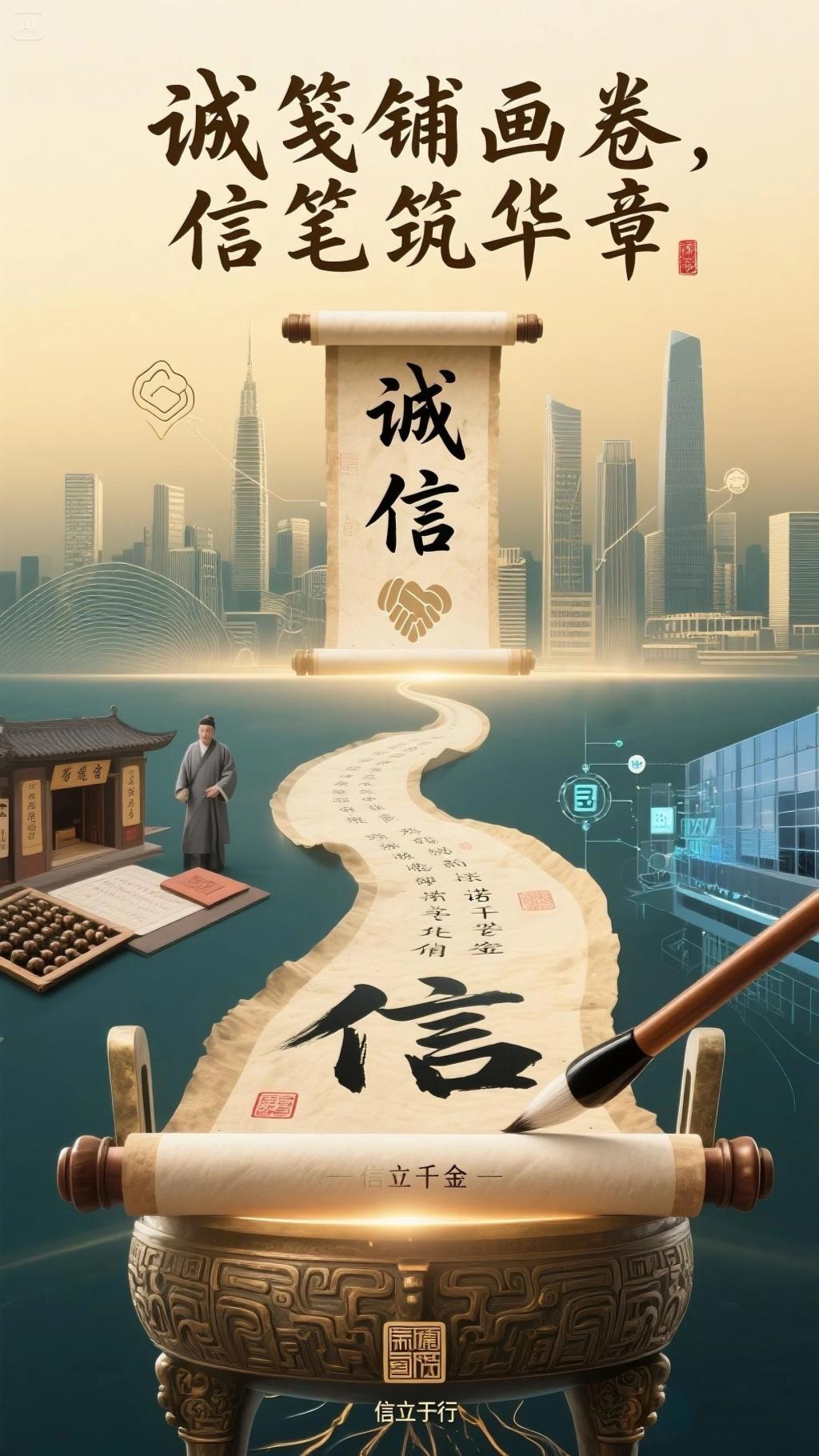 为进一步加强校园资助诚信文化建设,深入培育公司学子崇德向善、守信践诺的品格修养,彰显新时代青年诚信立身、感恩奋进的青春风采,激励员工以诚处世、以信立身的道德风尚。xc体育举办“诚笺铺画卷,信笔筑华章”诚信主题宣传作品比赛活动,活动期间同学们积极响应,征集到大量优秀作品,充分展示公司员工对于资助诚信内涵的深度理解,现将优秀作品进行展示。
