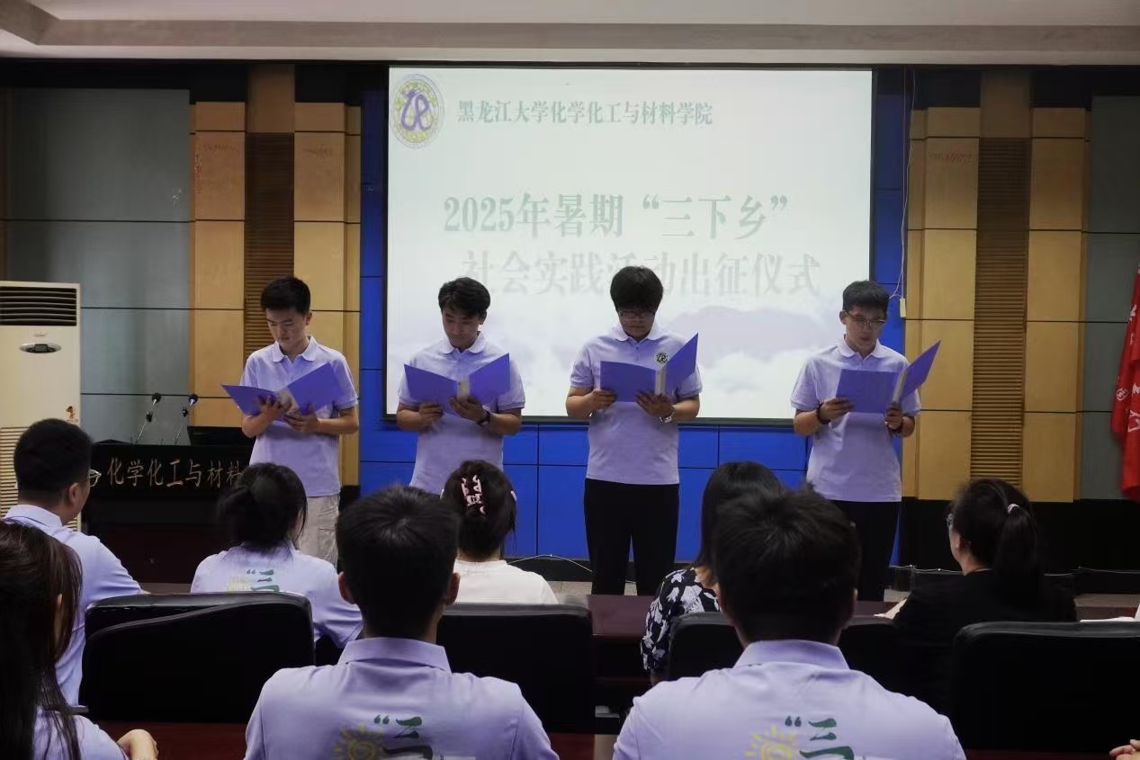 随后,公司党委副书记贾彩鑫对本次出征仪式进行总结,对即将出征的队员们表达了殷切期望,并针对此次暑期“三下乡”实践活动提出几点要求:一是要提高政治站位,锤炼精神品格。把社会实践中的收获转化成前进的不息动力,用青年声音讲好黑大故事,讲好化学故事,牢记“勤奋、严谨、求实、创新”的院训,展现黑大化学人的青春风采;二是要扎根基层实践,彰显个人价值。真正的深入调研基层的实际情况,带着是什么、做什么、怎么做的目光去解决问题,扎根基层,体现黑大化学人的价值;三是形成组织体系,塑造公司品牌。对内利用自身的专业知识和技能去切实的服务于群众,凸显团队的亮点和特色;对外通过创新性宣传方式弘扬黑大化学的办学理念和价值观,提升社会影响力。