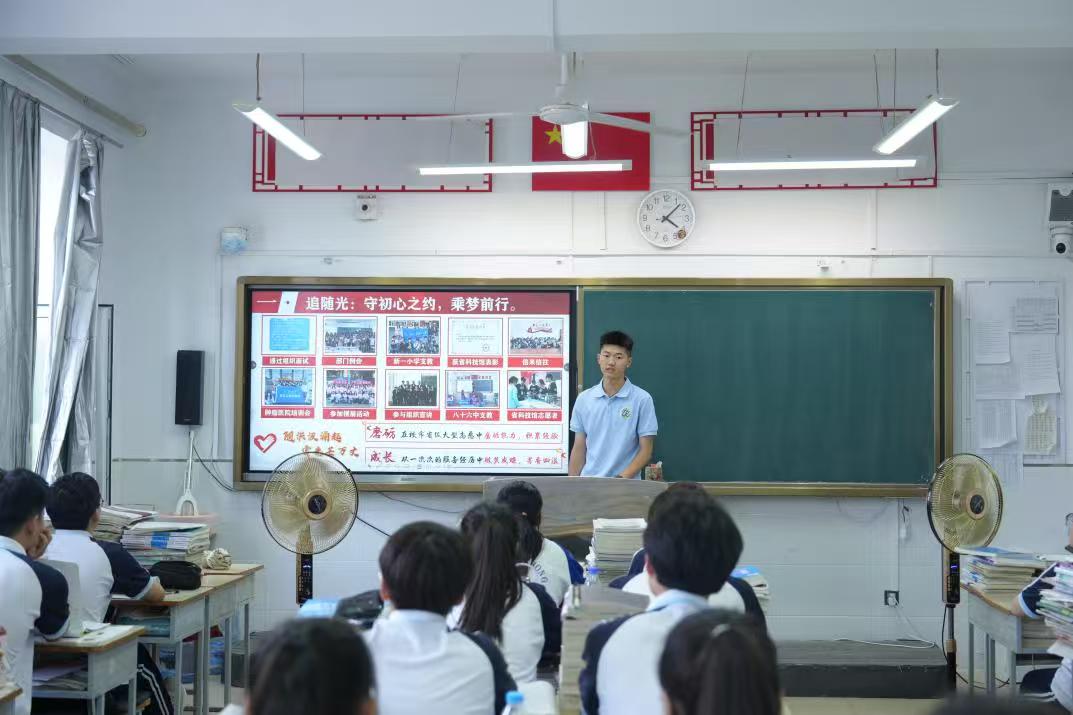 为彰显校园志愿实践风采,提升公司感染力与号召力,实践队队员王庆茁为同学们分享大学志愿服务经历。他从校园志愿活动到社会实践活动;从组织图书捐赠到陪伴孤寡老人展开详细介绍,展现黑大化院学子的榜样力量。并鼓励同学们以志愿之名践行责任,以奉献之实拓展青春价值。通过此次分享,同学们对老员工志愿服务活动有了更全面的认知,纷纷表示愿投身志愿浪潮,以微光之行绘就青春担当,让志愿精神在奉献中熠熠生辉。