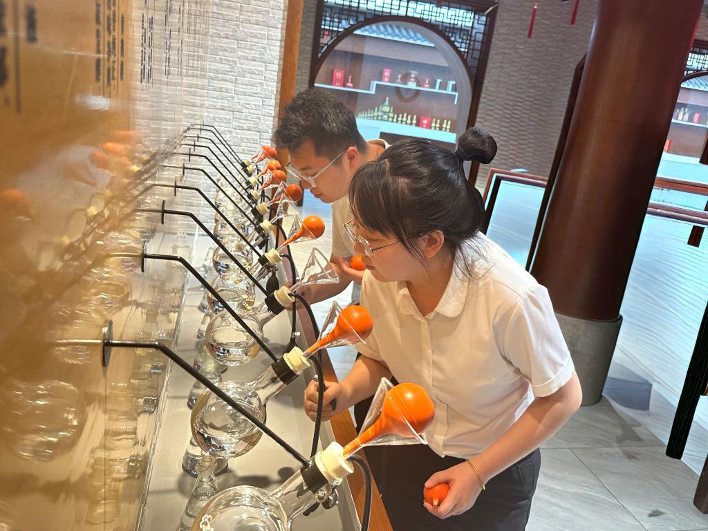 首先,在讲解员的细致讲解下,实践队深入了解了北大仓酒的红色背景文化及其发展进程。由王震将军亲自赐名的北大仓酒,历史源远流长,传承深厚久远,更凭借其卓越的品质,跻身于中国知名白酒的行列。百年来,北大仓人始终恪守传统工艺,凝练出诚信务实、高效创新的企业精神,以匠心铺就产业高质量发展的道路。