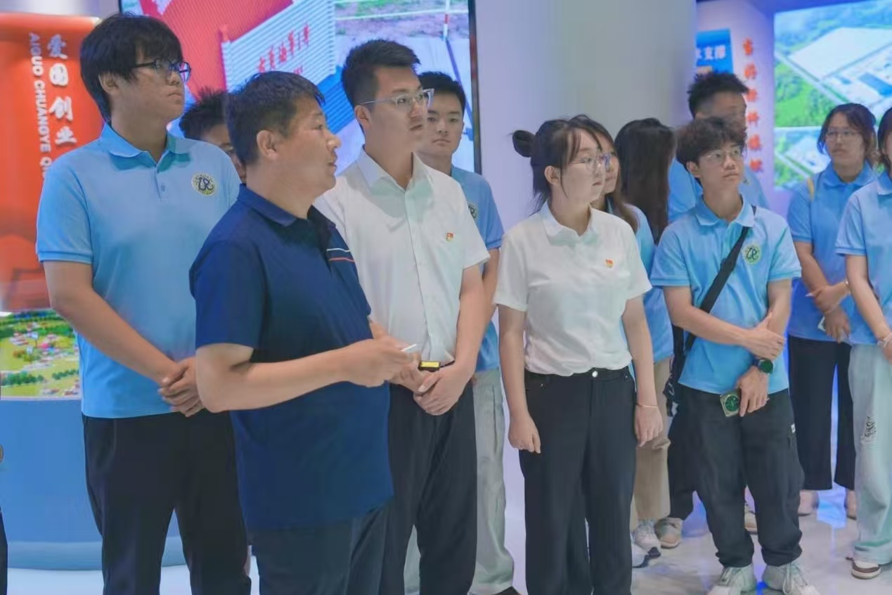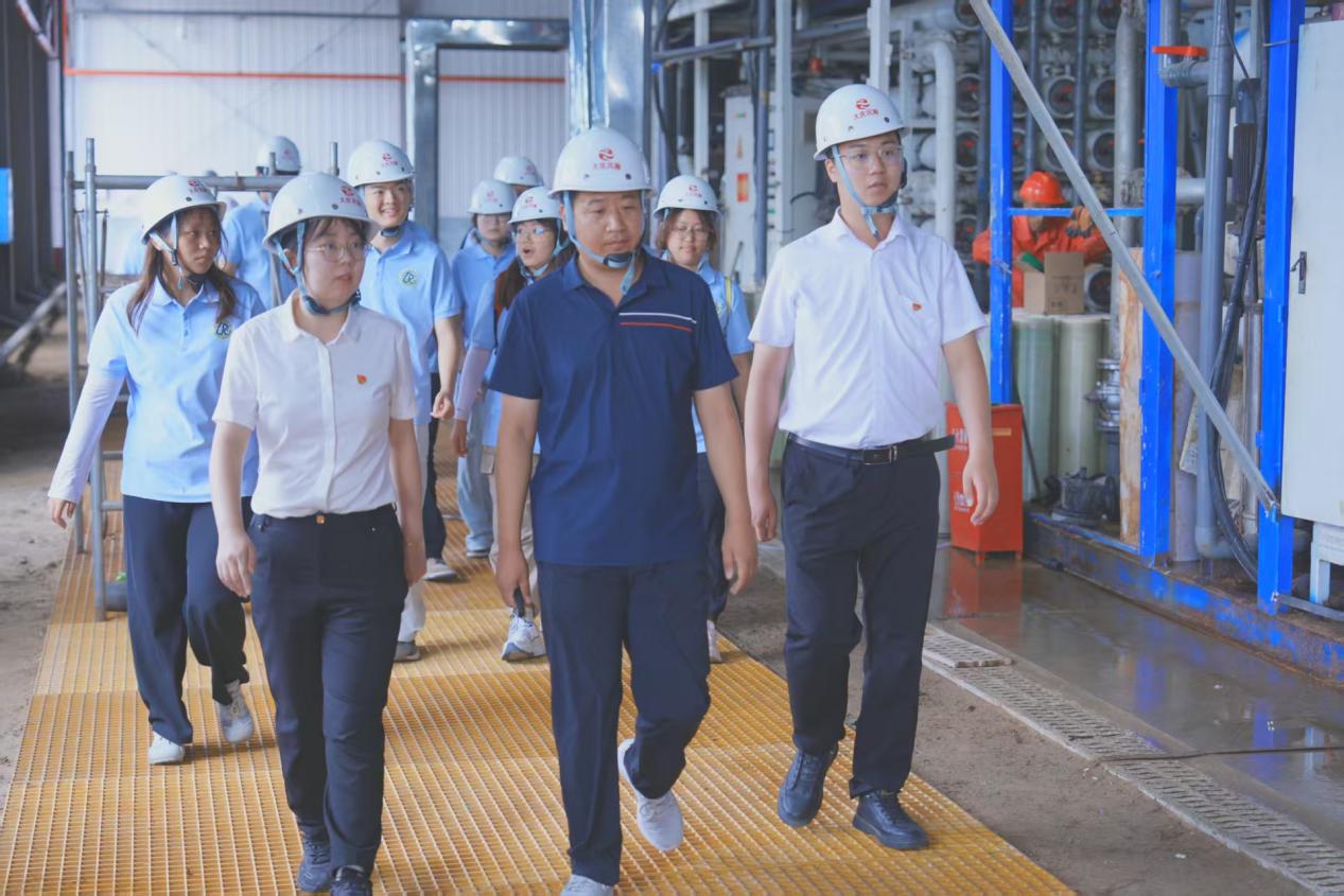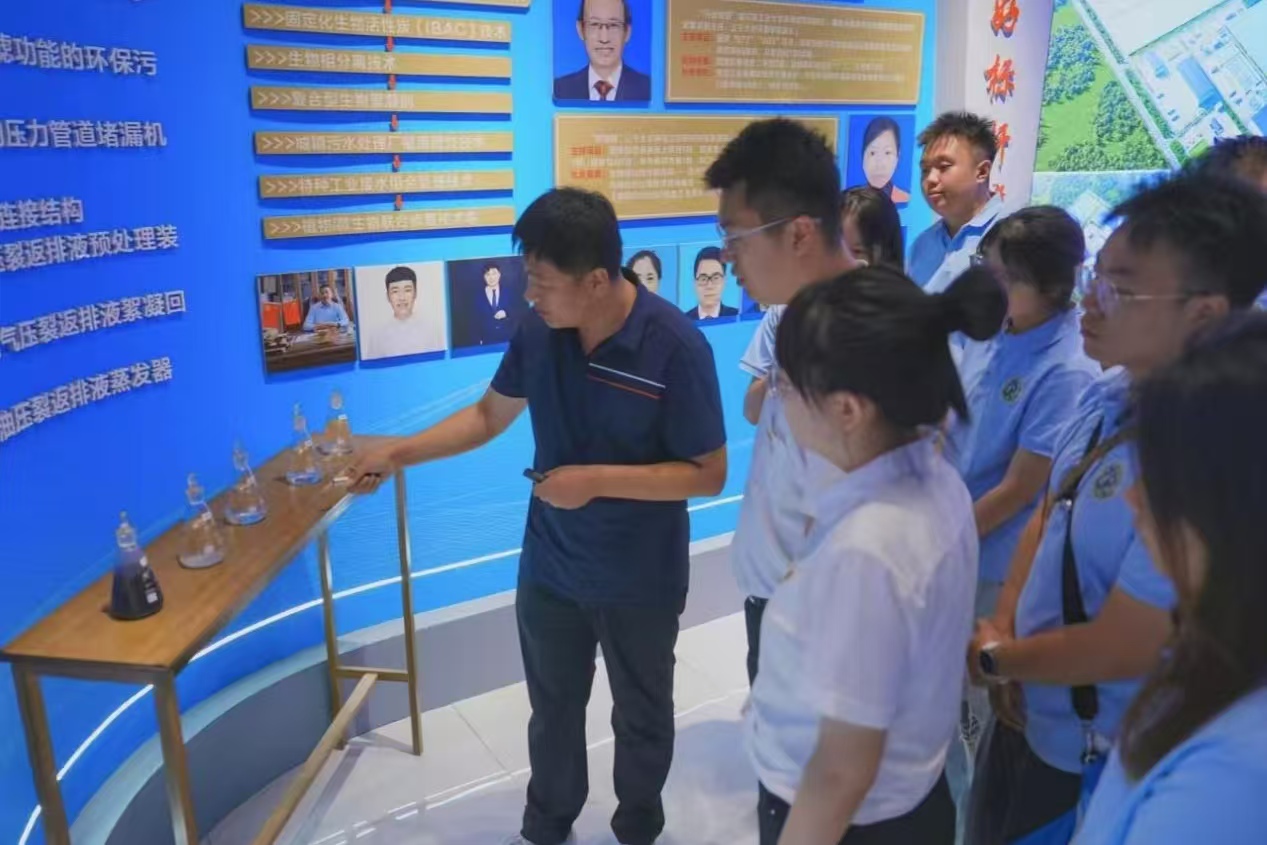 随后,在大庆风潮环保科技有限公司负责人的陪同下,实践队走进水资源处理工厂,近距离了解水处理系统运行情况。他以车间为依托,讲解了有关水资源净化的核心技术,以及高效处理工艺,结合实际展示了不同水质的处理方案,并进一步阐述了如何通过智能化调控的方式,保障水资源循环利用全流程稳定运行。实践队员们对水资源循环利用的技术原理、工艺实施及智能管控有了全面且深入的认识。
