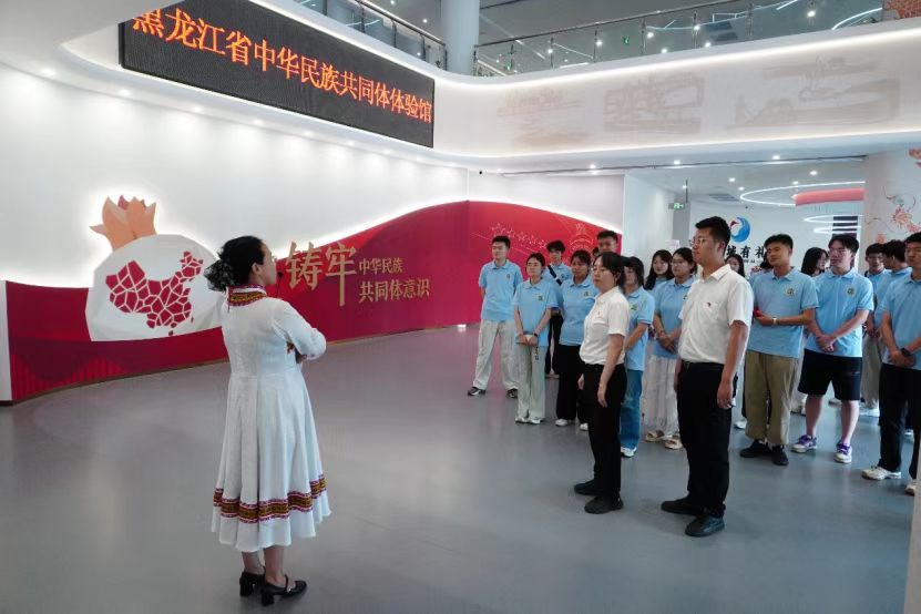 实践队的红色探访之旅,在历史与现实的交融中激荡着初心力量。在民族共同体体验馆里,3D全息投影不仅展现着各族文化交融,更清晰勾勒出抗联时期各族儿女并肩御敌的红色轨迹。在烈士陵园和红色教育基地中,一张张泛黄的入党申请书、一件件磨损的劳动工具,诉说着各族群众跟着党建设边疆、守护家园的赤诚。在齐齐哈尔市博物馆内,讲述着英烈与各族群众鱼水情深的故事,让文字记载化作震撼人心的红色现场。