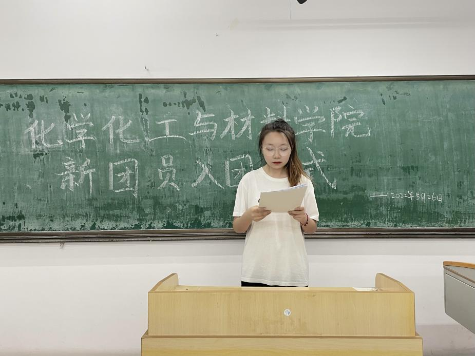 首先,李熠宣读了新团员名单,并对新团员表示诚挚的祝贺和美好的祝愿。随后,她宣读了《中国共产主义青年团章程》中有关团员义务和权利的规定,并为团员们发放了团员证、团徽及团章。紧接着,在她的带领下,新团员们面向团旗庄严宣誓。青春誓言,高昂浑厚,表达了新入团团员对共青团组织的无限向往和为团组织增光添彩的青春激情。