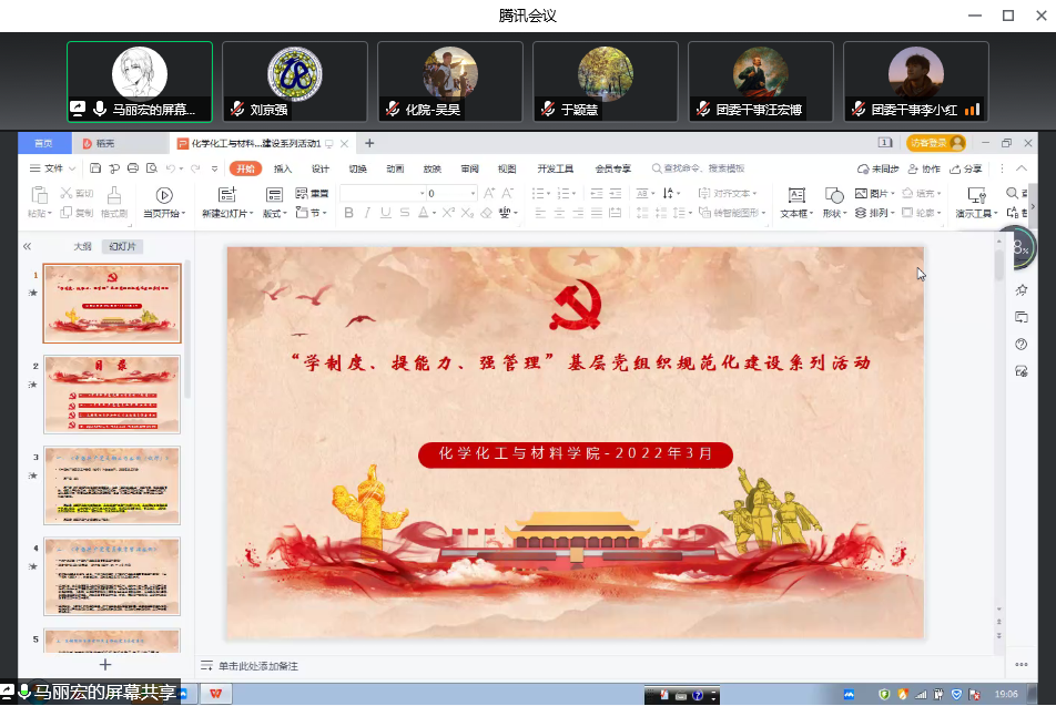 为深入推进基层党组织规范化标准化建设,切实提升党支部凝聚力与党务工作者的业务能力,公司党委于2022年3月23日19:00召开基层党组织规范化建设培训会。公司党委书记秦川丽、党委副书记贾彩鑫和13个支部书记及支部委员出席会议,会议由贾彩鑫同志主持。