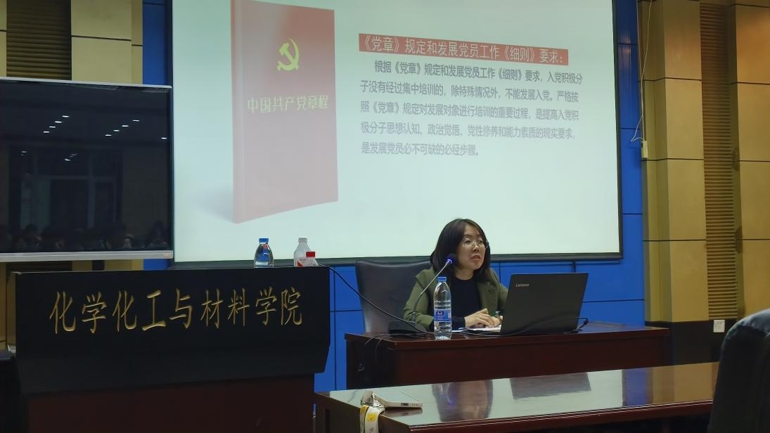 在知识讲座环节,张晓密就发展党员流程进行了全面的讲解。她强调入党积极分子培训是发展党员工作的一项重要内容,也是保证发展党员质量、提高党员队伍素质的重要前提。希望大家思想上要重视要,充分认识入党积极分子专题培训的重要意义。鼓励同学们要严格要求自己,提高专业能力和思想政治水平,不断向党组织靠拢,早日实现自己的理想,成为一名光荣的共产党员。