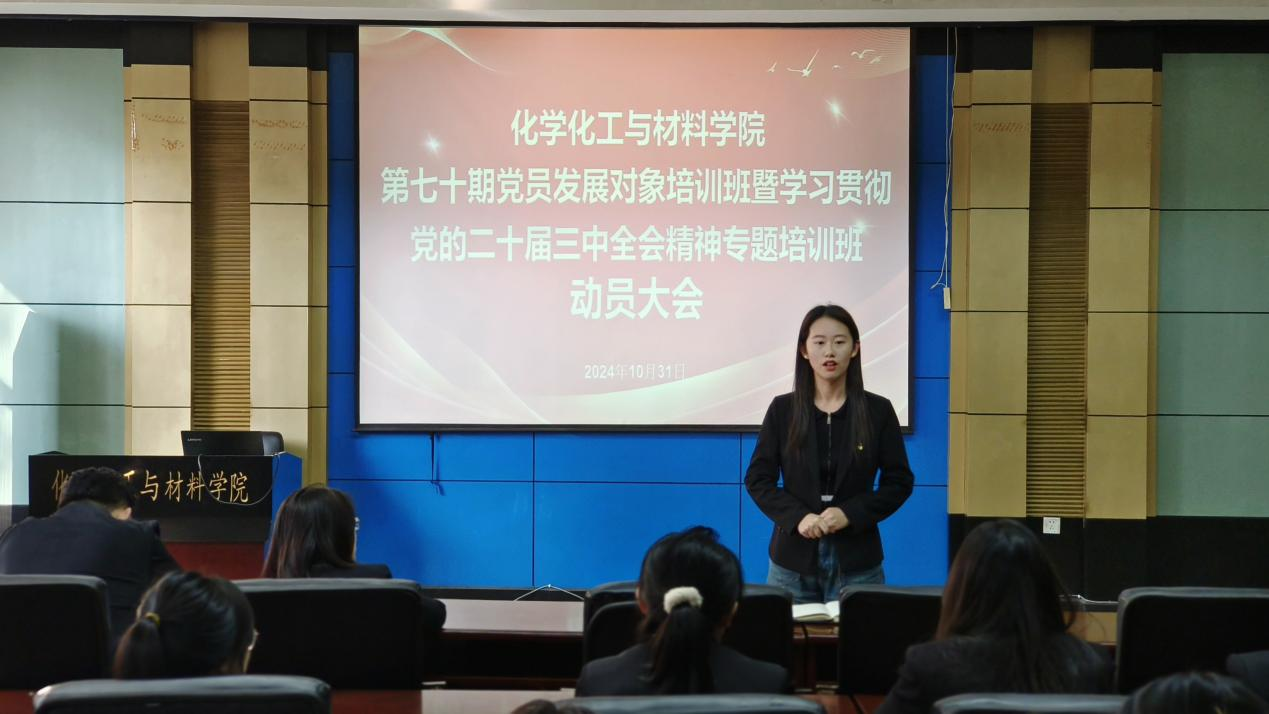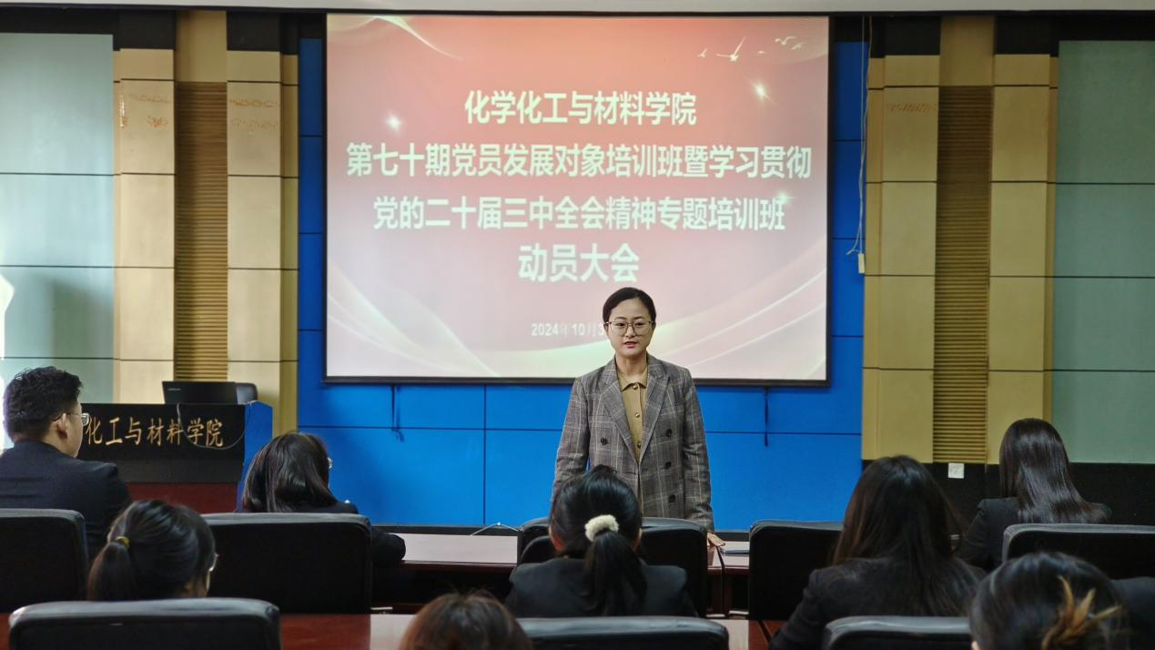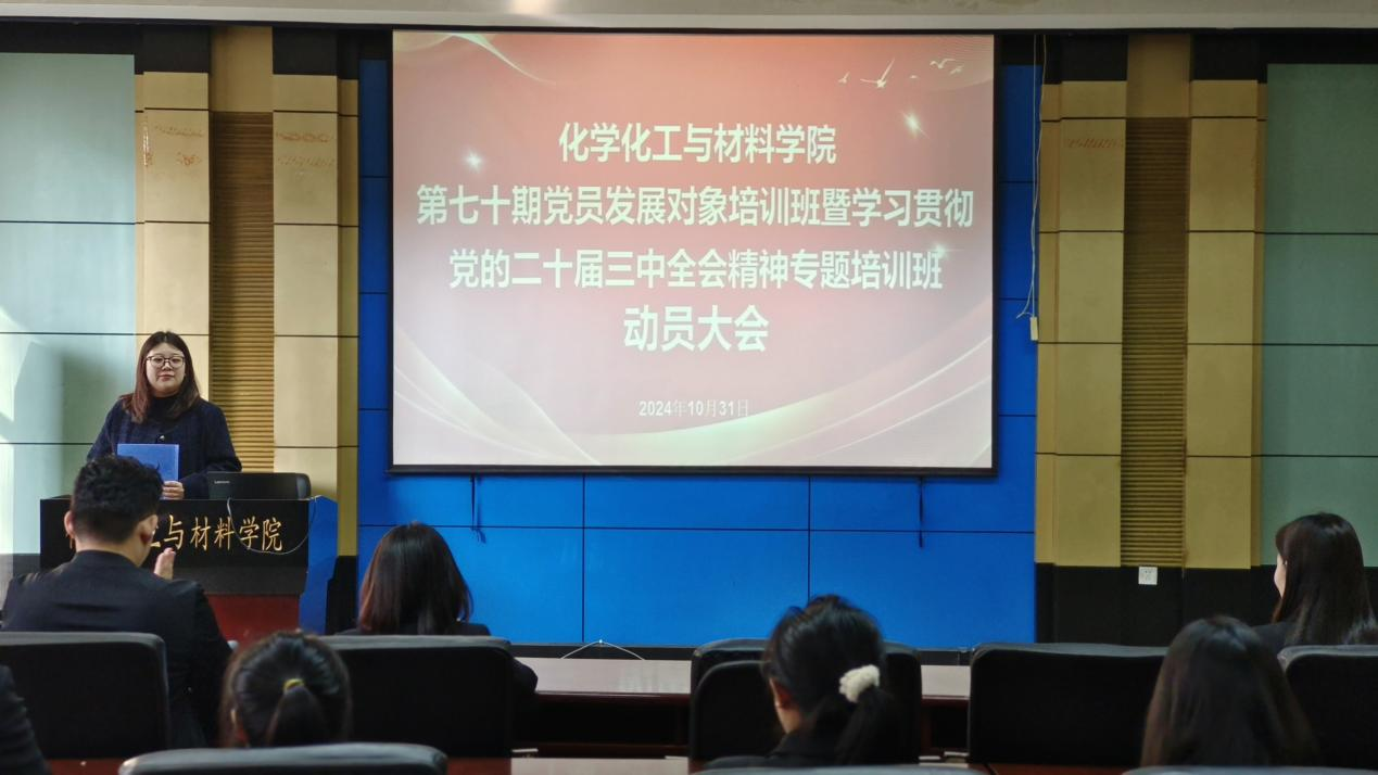公司党委于10月31日召开第七十期党员发展对象培训班动员大会。公司党委书记秦川丽、党委副书记贾彩鑫、组织员张晓密、团委副书记王增泽、团委副书记王欣及全体第七十期党员发展对象出席参加。大会由公司团委副书记史岚鑫主持。