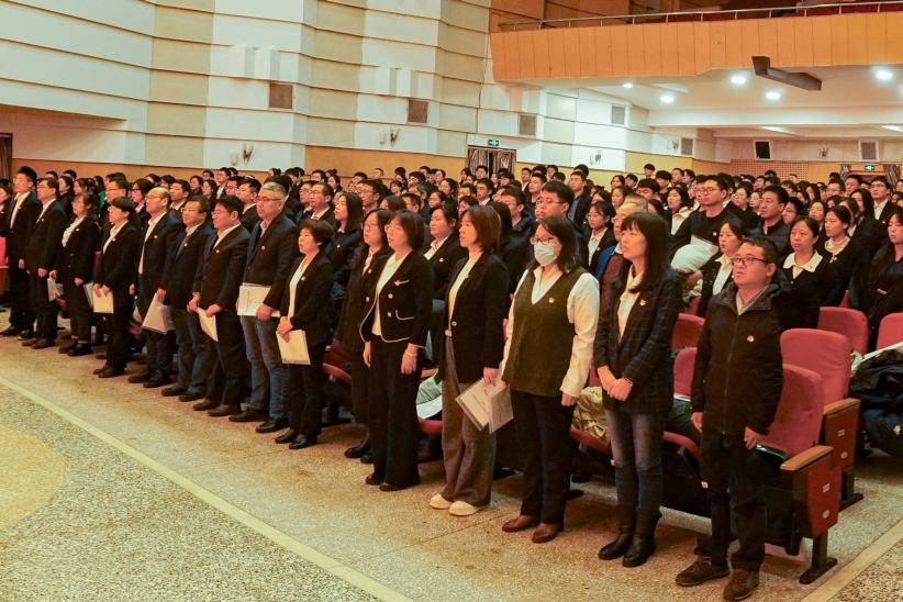 大会在庄严的国歌声中拉开帷幕,公司党委书记秦川丽宣布本次大会的主要议程。