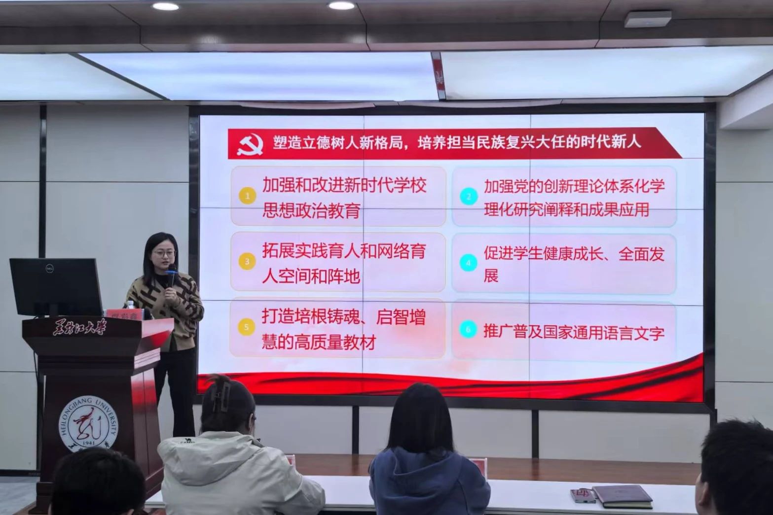 培训首课由公司党委副书记贾彩鑫就“习近平总书记关于教育的重要论述和教育强国建设规划纲要的重要性”进行重要讲话。首先贾彩鑫老师提出青年党员要明确认识习近平总书记关于育人事业建设要坚持党对教育的全面领导、把立德树人作为根本任务、优先发展教育事业、坚持社会主义办学方向、扎根中国大地办教育、以人民为中心发展教育、深化教育改革创新、将服务中华民族伟大复兴作为重要使命、把教师队伍建设作为基础性工作的九大核心原则。并从中提取教育为国育才、扎根中国、服务全局的精神内涵。随后,贾彩鑫老师概述了教育强国建设规划纲要的长远目标和阶段性成果。她强调全体员工党员应积极响应国家号召,将“塑造立德树人新格局” 作为首要任务以推动公司高质量发展,思想上紧跟党的步伐,以一言一行彰显党员的先进性,带动身边同学厚植爱党爱国爱社会主义的情感,以实际行动展现化院学子的风采。