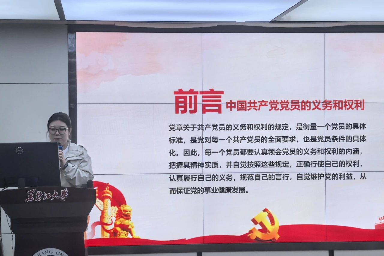 培训第三部分由公司团委副书记史岚鑫主讲,讲授中国共产党党员的权利和义务。史岚鑫老师紧扣《中国共产党章程》相关规定展开剖析,向全体预备党员详细解读党员八项义务的实质与意义。从学习党的理论方针、贯彻基本路线、坚持党和人民利益至上等义务,系统讲解党员需承担的责任,强调履行义务需全面、严格、自觉,立足本职岗位发挥先锋模范作用。同时指出党员应深入学习党章,提高理论知识和政治素质,牢记权利与义务的辩证统一,以党章为准则知行合一,笃行不怠。