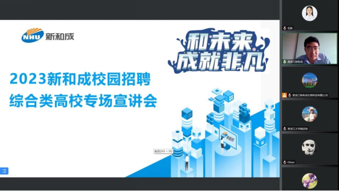 为了更好的解决大学毕业生就业难问题,缓解当今大学毕业生就业压力,xc体育于2022年9月16日15时举办浙江新和成股份有限公司专场招聘会。本次线上招聘会由2023届毕业生辅导员兰瑞、李鸿欣主持,浙江新和成股份有限公司招聘经理乔丹担任主讲,2023届部分毕业生参加。