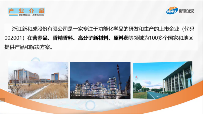 宣讲伊始,乔先生介绍了浙江新和成股份有限公司是一家专注于功能化学品的研发和生产的上市企业,并且以”创新精细化工,改善生活品质”为使命,致力于服务人类健康美好生活和社会可持续发展。坚持创新驱动,不断超越化工边界,为客户提供更有竞争力的产品和解决方案,为其他利益相关方创造可持续的价值,并帮助应对食物、环境和生活质量等领域的挑战,推动人、社会、地球实现均衡、可持续发展。不仅如此,浙江新和成股份有限公司还是国内最大的维生素生产企业,同时也是许多大企业的原料供应商。