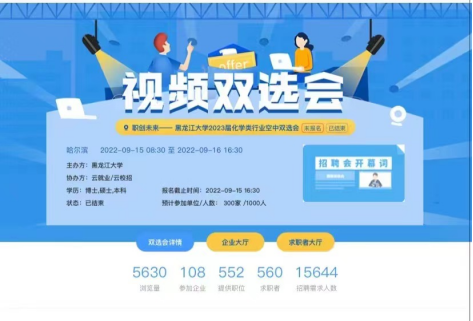 为进一步畅通就业渠道、营造就业氛围,为2023届毕业生和用人单位搭建起双向就业服务平台,促进毕业生实现更加充分更高质量就业。xc体育于2022年9月15日——9月16日利用云校招就业服务平台举办2023届毕业生化学类行业空中双选会。