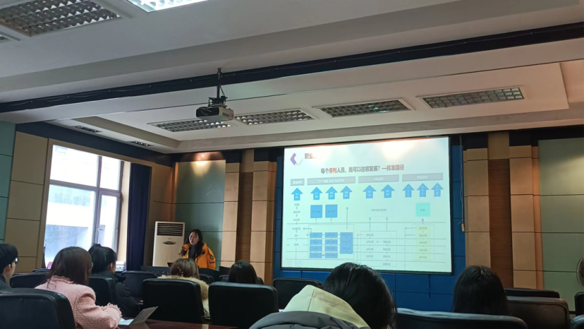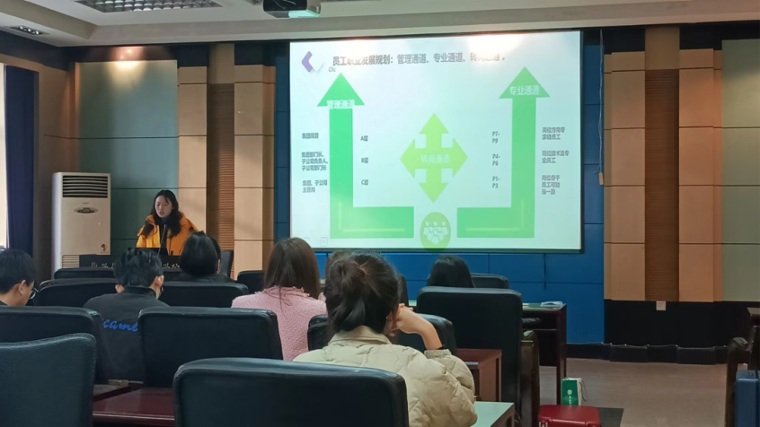 紧接着,杜经理介绍了公司的一系列招聘岗位及其招聘条件,并对公司的研发方向、科研实力及科研成果再次进行详细介绍。此外,公司还有诸多福利待遇、员工发展培训、精英计划、双通道晋升等。本次校招,一方面面对生产质量、研发和技术序列,另一方面面对市场,共同药业作为研发、生产和销售一体的公司,有自己的营销中心,需要化工制药相关专业的医药代表。最后,杜经理针对员工福利待遇、工作时间、就业补助等多方面进行补充,充分展示了共同药业系统的发展通道与优秀的福利待遇。