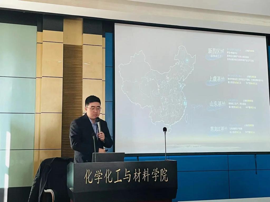 会议伊始,乔经理介绍到新和成专注于维生素、高分子材料等功能化学品的研发、生产、销售和服务,为全球100多个国家和地区的客户在营养健康、日常护理、环保能源等领域提供综合解决方案。新和成公司坐落于浙江,生产基地占地范围极广,公司坚持“需求导向、内联外合”的研发理念,通过微生物研究等手段实现产品的关键技术创新和产业化应用。