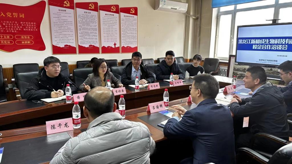 会议伊始,公司党委副书记贾彩鑫向企业介绍公司招生情况、教师情况、专业情况,围绕公司对员工的培养与黑龙江新和成生物科技有限公司总经理吕国锋展开深入交流。副经理李志斌向企业介绍公司教学专业情况,同时对本科生、研究生校企合作培养,实现校企互动提出展望。通过对公司情况的介绍,进一步增强了企业对公司发展及学科培养的了解,为企业更好的吸纳和储备优秀人才提供了有力保障。