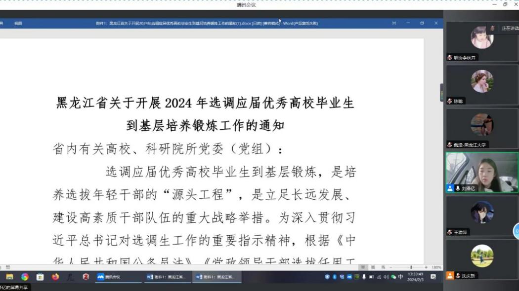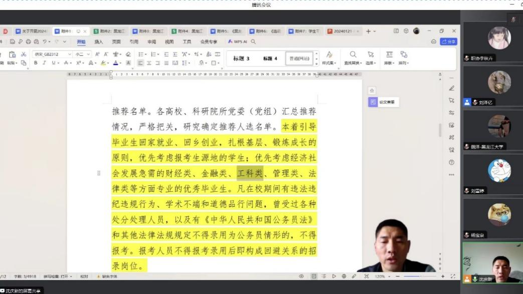 接下来,沈庆新老师结合集中选调招生计划安排的内容详细解读了关于2024年黑龙江省选调生相关政策文件,并针对选调岗位数量、选调资格条件、选调程序、注意事项进行了全面讲解,并引导毕业生选调回家就业,回乡创业,扎根基层,助力乡村振兴和发展。
