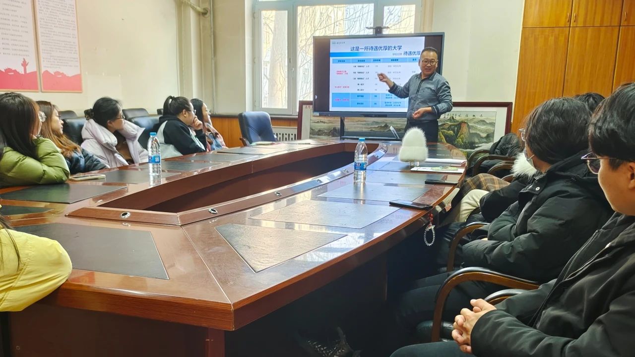 会议伊始,马老师向同学们介绍了塔里木大学的校园环境、发展规划以及招聘计划等相关信息,同时就公司的科研资源、科研现状、人才培养机制进行了详细的讲解,让同学们对公司有了全面的了解。马老师强调公司对人才的需求和重视。他表示,公司积极推进各项事业发展,需要更多优秀的人才加入到公司建设中来,并向同学们发出诚挚的邀请。