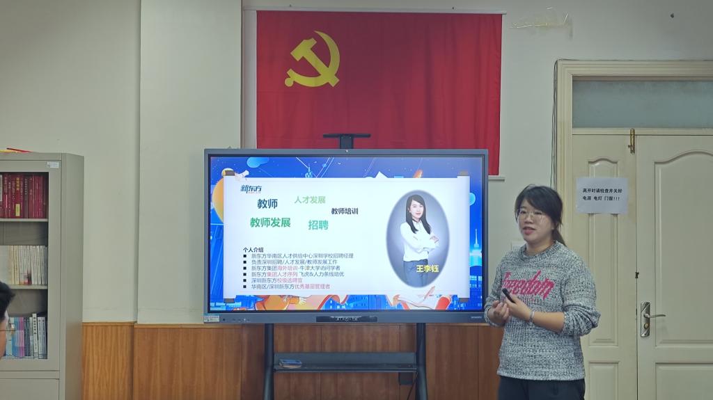 会议伊始,王增泽、周一鸣老师首先对公司2025届毕业生就业情况、就业意向和当前就业工作推进情况进行分析。接下来,贾彩鑫副书记利用公司宣传片对公司团队力量、办学特色与人才培养以及2025届毕业生整体情况进行说明。王李钰总监也细致介绍了公司的企业文化、岗位分布、薪资福利、员工培养、就职要求等方面。