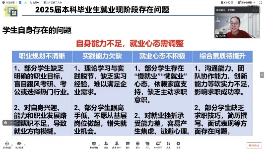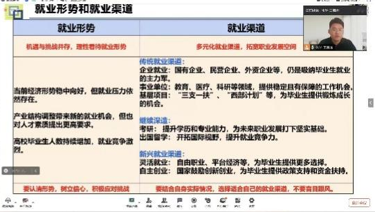 最后,贾彩鑫老师对本次大会进行了总结。她指出,当前部分员工面临的就业困境与获得信息不对称有关,同时强调了就业问题的重要性和紧迫性。贾老师详细分析了员工在就业准备中的四种类型以及企业招聘的四种情况,建议家长与孩子充分沟通,明确自身定位,以便有针对性地进行指导。此外,她提出,员工应通过实践了解自己的职业方向和学历需求,在选择升学时更有针对性地提升自身能力,为未来就业做好充分准备。最后贾老师还鼓励家长积极调动多方资源,支持员工的未来发展。她表示,公司和公司将全力配合,为员工提供全方位的就业服务,助力其实现职业理想。