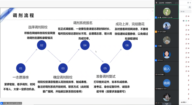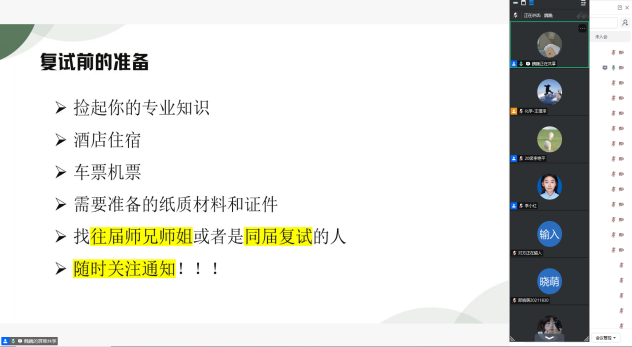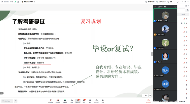 为精准服务考研学子备考需求,系统提升员工复试综合竞争力,xc体育于2025年3月21日通过线上平台召开"研途护航·筑梦未来"考研复试与调剂专题指导会。会议由公司2025届本科毕业生辅导员王增泽主持,特邀2024届优秀毕业生代表李艳平、魏巍担任主讲,部分2025届毕业生参与学习。